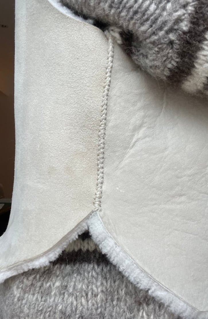 Each piece is unique, with its own natural markings and texture. The sheepskin is supple and lightweight, allowing it to move beautifully and feel wonderfully soft to wear. They are also reversible !!