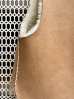 Each piece is unique, with its own natural markings and texture. The sheepskin is supple and lightweight, allowing it to move beautifully and feel wonderfully soft to wear. They are also reversible !!